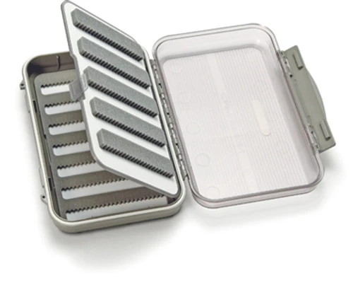 Waterproof Fly Case with 2 Micro Slit Foams, with 7 pockets on each side plus additional swing leaf, the other side has compartments for dry flies