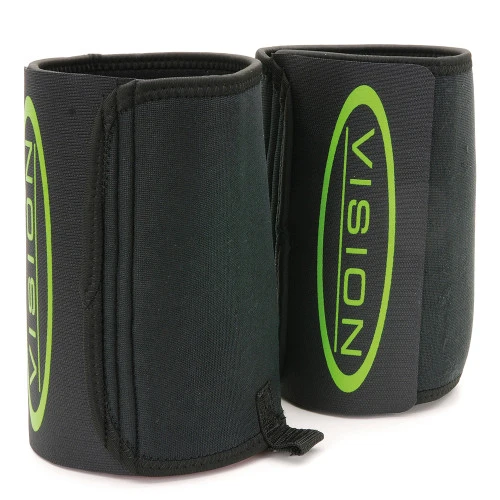 The neoprene gravel guards will fit over any boot and stay put. The neoprene is nylon faced on the inside, and the outside is a brushed, loop fabric making the Velcro closure system infinitely adjustable. They are designed individually for left and right foot. They can also be hooked securely to your wading shoes to avoid riding up.