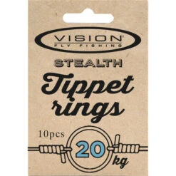 Tie the end of your leader onto one of these and then tie your tippet length to the ring. These are also great for tying droppers to leader or when you want to attach fluorocarbon to monofilament and as they weigh almost nothing they do not affect turnover or the leaders floating/sinking properties. Our tippet rings are available as 10 or 20 kilo breaking strength. The matt black colour doesn’t reflect so they won’t spook the fish. 10pcs/bag.